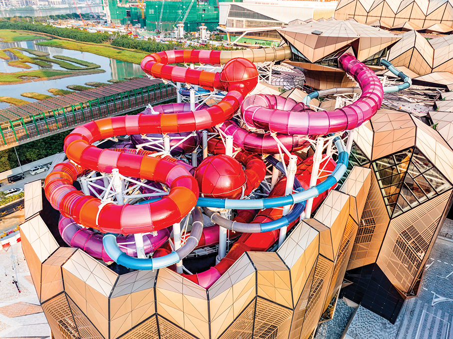 The launching ceremony of the indoor water park was held yesterday afternoon at Studio City in Cotai. The 10,000-square-metre indoor water park features 16 water attractions, seven water slides, one water roller coaster, one indoor-outdoor surfing simulator, two wave pools and a 250-metre-long action river called Starlight Rapids.