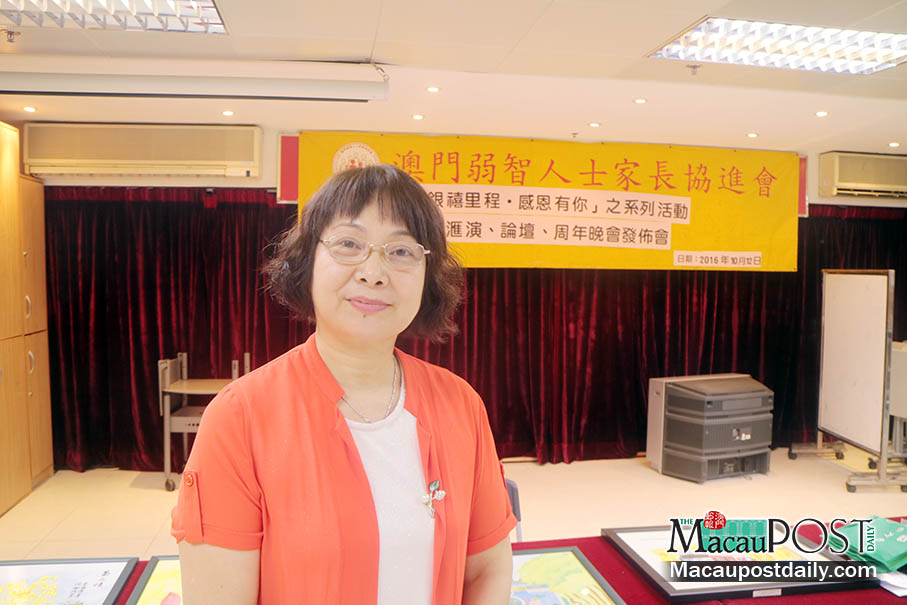 Association of Parents of People with Intellectual Disabilities of Macau (AFEDMM) General Secretary Sandra Lio Sao Wa poses yesterday at the group’s office.