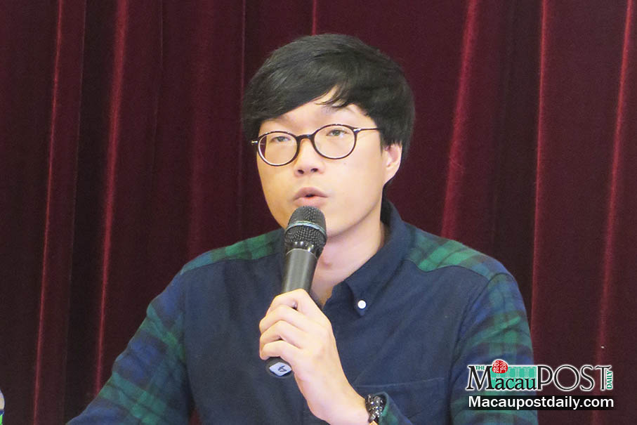 Victor Hoi Chin Lei, who heads the Higher Education Counselling Centre jointly run by the General Association of Chinese Students of Macau (AECM) and the Macau Foundation, speaks during a press conference at an AECM youth service centre in Avenida de Venceslau de Morais. Photo: Tony Wong