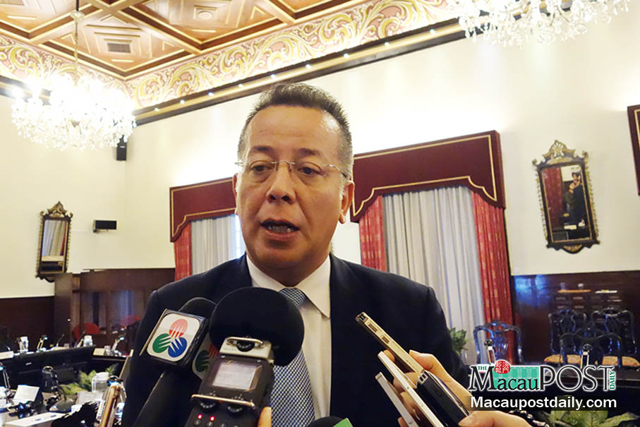Civic and Municipal Affairs Bureau (IACM) President Jose Fonseca Tavares talks to the media after a consultative committee meeting at the IACM headquarters in Avenida de Almeida Ribeiro yesterday. Photo: Annie Cheung