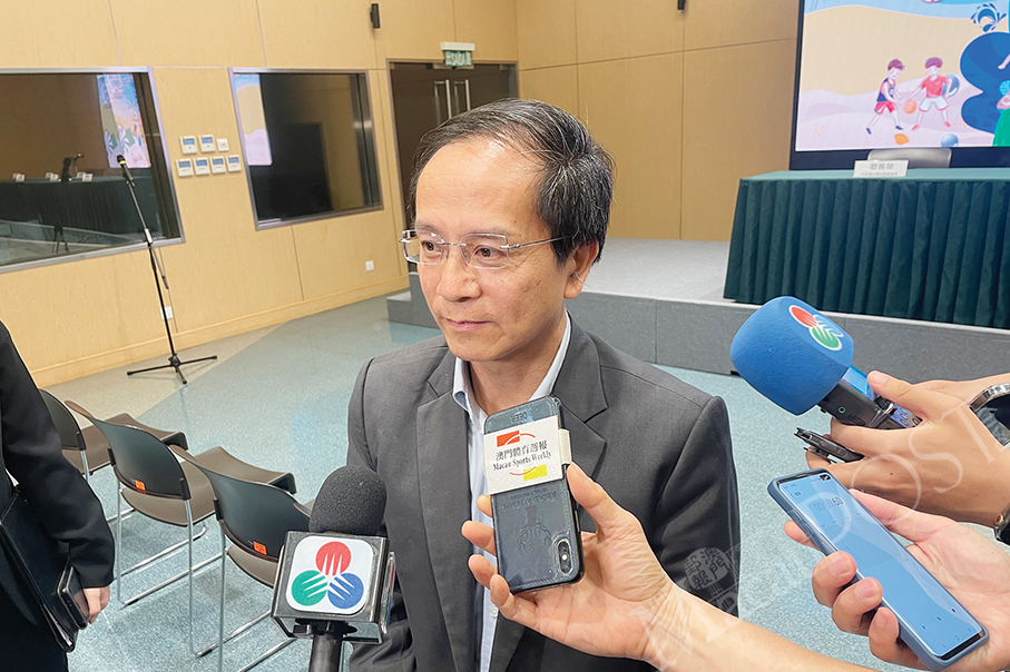 Meanwhile, Chao announced in a separate press conference yesterday that his bureau has joined hands with the Public Administration and Civil Service Bureau (SAFP) to co-host a sport competition for government entities from next month through June, with a total of nine multi-sport events including ball games, track and field, and swimming, hoping to encourage and cultivate the habit of regular exercise among civil servants, strengthen their sense of belonging to their departments and boost morale and productiveness.