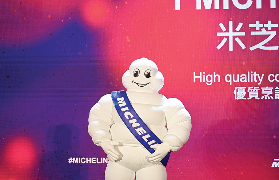 Michelin tyre company’s official mascot Bibendum, commonly referred to in English as the Michelin Man or Michelin Tyre Man, awaits yesterday’s award recipients on stage.