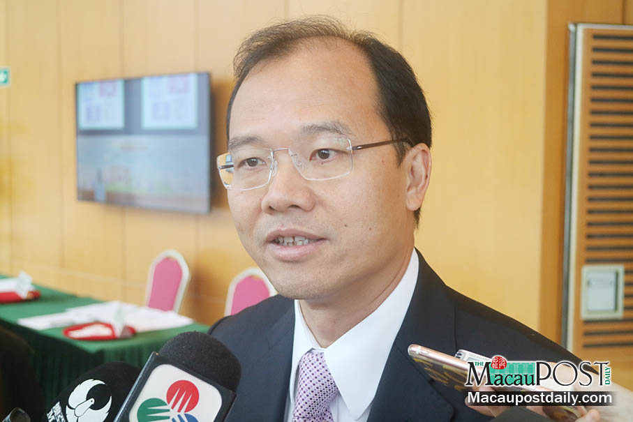 Energy Sector Development Office (GDSE) Director Hoi Chi Leong speaks to reporters on the sidelines of a prize-giving ceremony about an energy-saving competition at the Macau Science Centre. Photo: Debby Seng