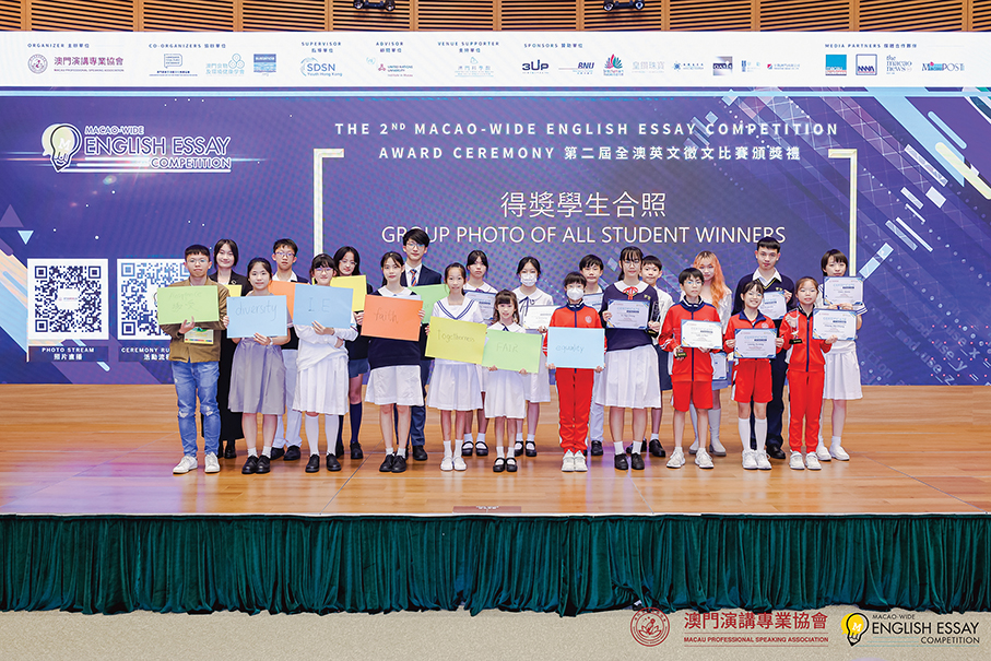 OOrganised by the Macao Professional Speaking Association (MPSA) and co-organised by Language Exchange & Cultural Promotion Association, Society of Food & Environmental Health (Macao), and Sustainable Development Association, the Macao-wide English Essay Competition (MEEC) wrapped up its 2022-2023 competition with an award ceremony on May 13 at the Macao Science Centre.