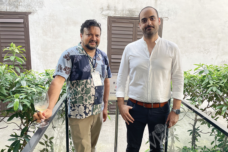 Docomomo Macau Association Chairman Rui Leão (left) and Vice President Tiago Rebocho pose on the sidelines of Saturday’s kick-off ceremony of the three-week film-fest at Cinematheque•Passion near the Ruins of Saint Paul’s.