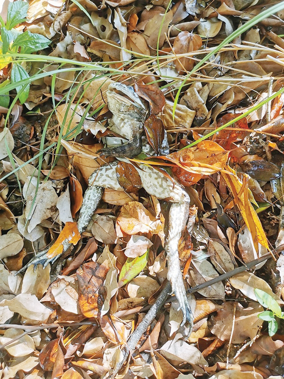 This undated file photo released by the Macau Municipal Affairs Bureau (IAM) yesterday shows a dead frog at an undisclosed location – apparently in Macau. The caption provided by the bureau did not mention the circumstances of the amphibian’s death.