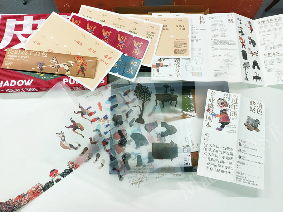 This photo taken recently in the association’s venue shows a shadow play kit containing shadow play figures, story scripts, and the stage.