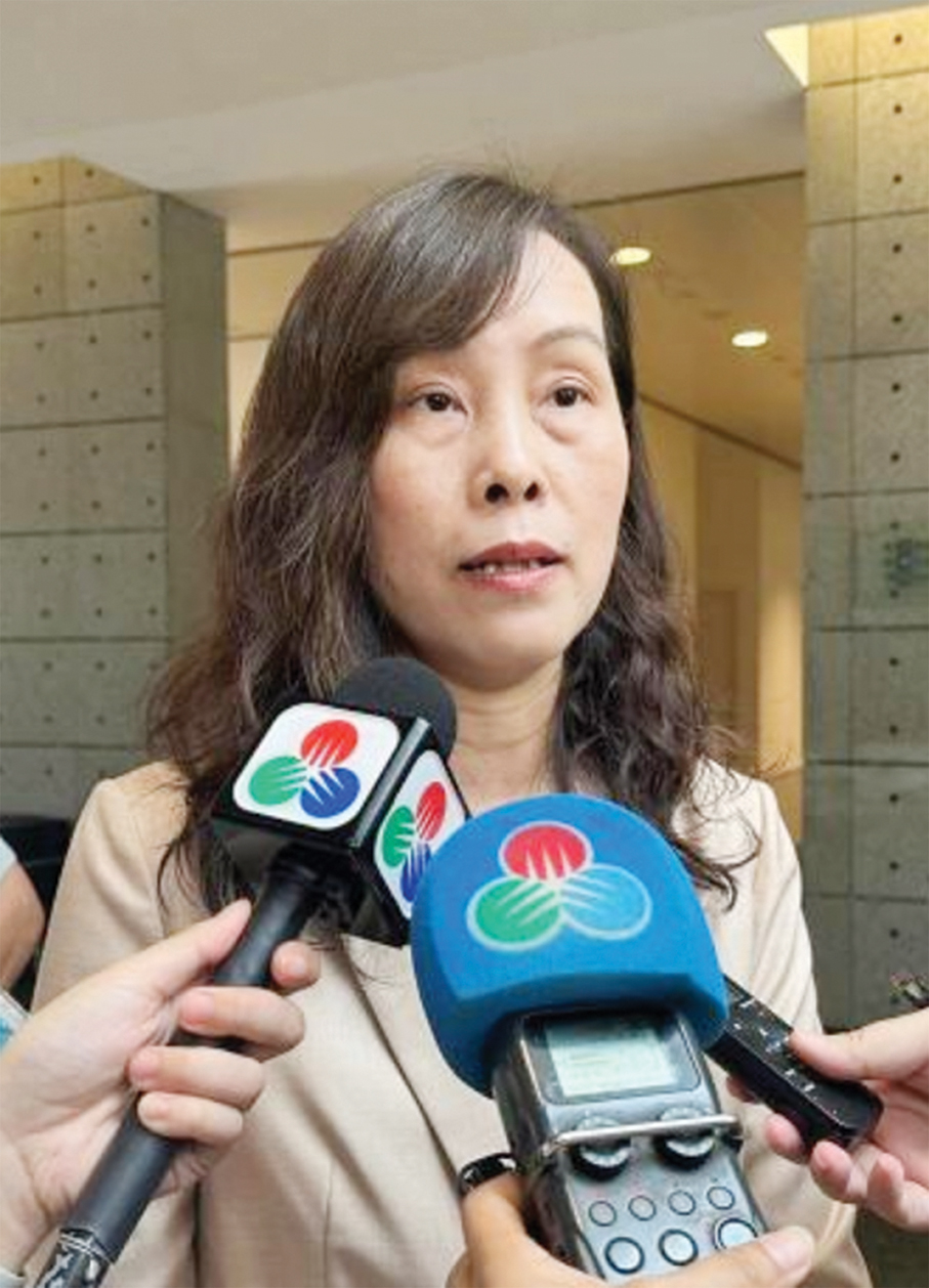 Secretary for Social Affairs and Culture Elsie Ao Ieong U speaks to reporters on the sidelines of yesterday’s closed-door plenary meeting of the Cultural Development Consultative Committee at the Macau Cultural Centre in Nape yesterday. – Photo courtesy of TDM