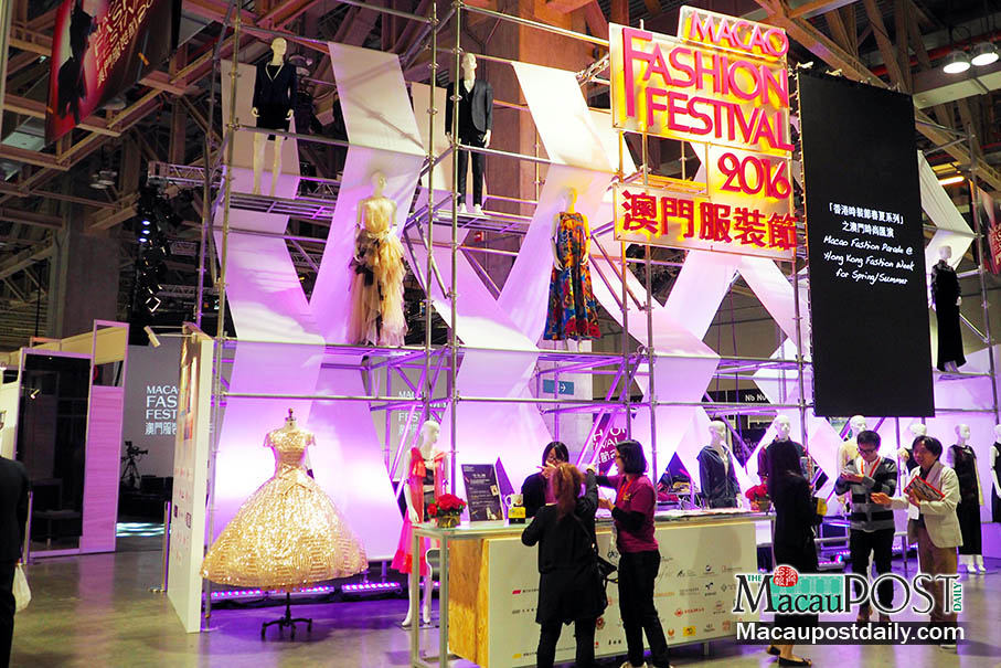 Exhibitors talk to visitors at the Fashion Festival segment of the 21st Macau International Trade and Investment Fair (MIF) at the Venetian in Cotai on Thursday. – Photo: Iong Tat Choi