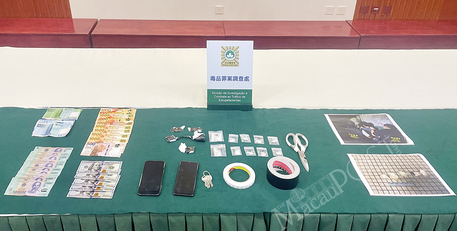 According to Chong, in the operation, PJ officers seized drug proceeds of 16,000 patacas and 10 packets of ice weighing a total of 14.54 grammes, with an estimated street value of about 50,000 patacas.