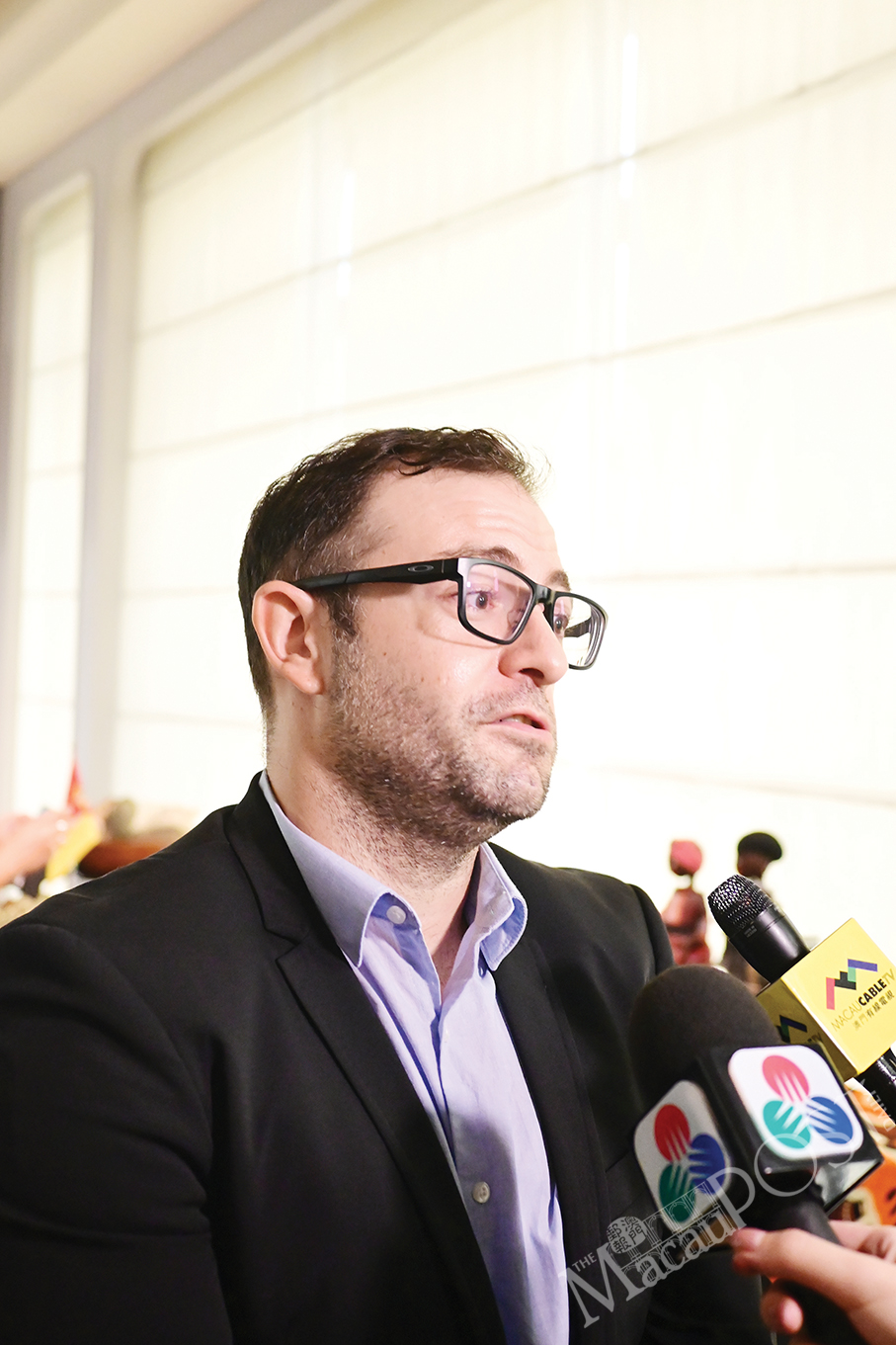 Mozambique Friends Association (AAM) Vice President Tiago Azevedo speaks with reporters after yesterday’s press conference at the Artyzen Grand Lapa Macau hotel.