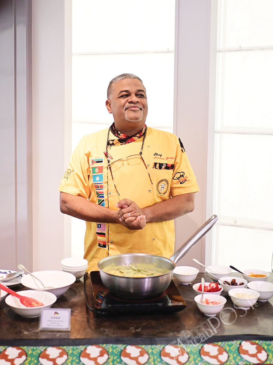 A press conference about the gastronomic programme was held yesterday at the Artyzen Grand Lapa Macau hotel, which also featured a live cooking demonstration of the “prawns and okra in coconut milk” dish by Ambassador of Mozambican Cuisine, Chef Carlos Khan da Graça.