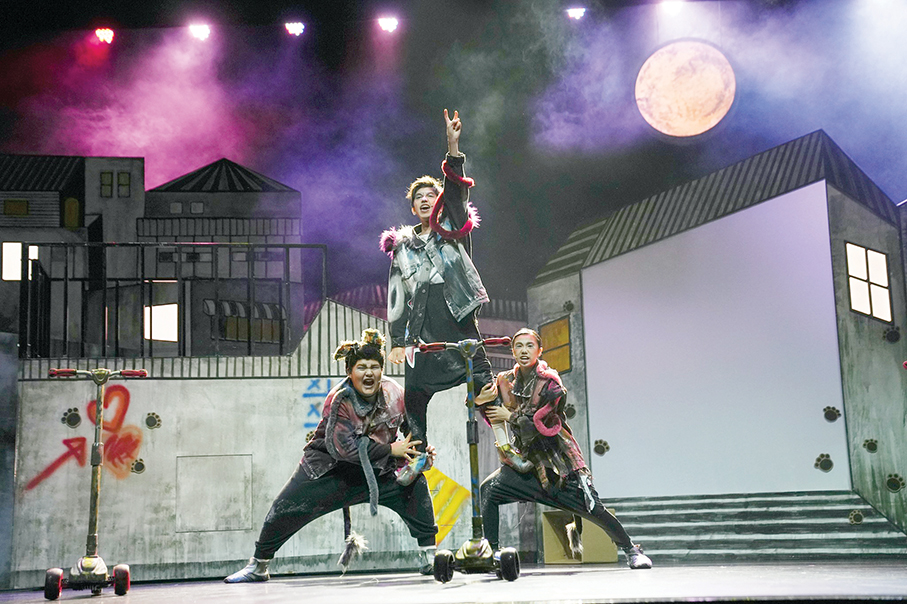 Performers act as different animals in the musical “The Praises of Cat Warrior’’ last week at the Sands Theatre in Nape.