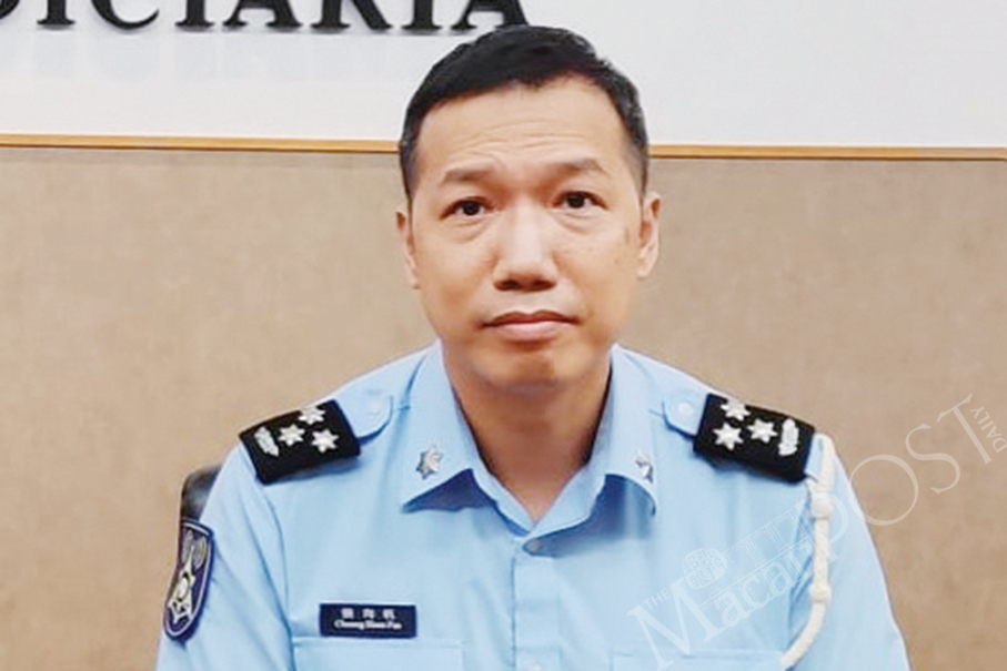 Public Security Police (PSP) spokesman Cheong Heon Fan looks on during yesterday’s regular press conference.