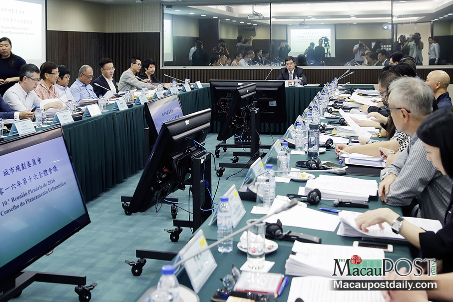 Secretary for Transport and Public Works Raimundo do Rosario (centre) presides over yesterday’s meeting of the Urban Planning Council at the Transport Bureau (DSAT). Photo: GCS