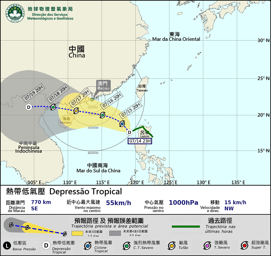 According to a statement by the Macau Meterological and Geophysical Bureau (SMG), the standby signal was issued at 10:30 p.m. today. At 10 p.m., the tropical cyclone was located 770 km southeast of Macau.