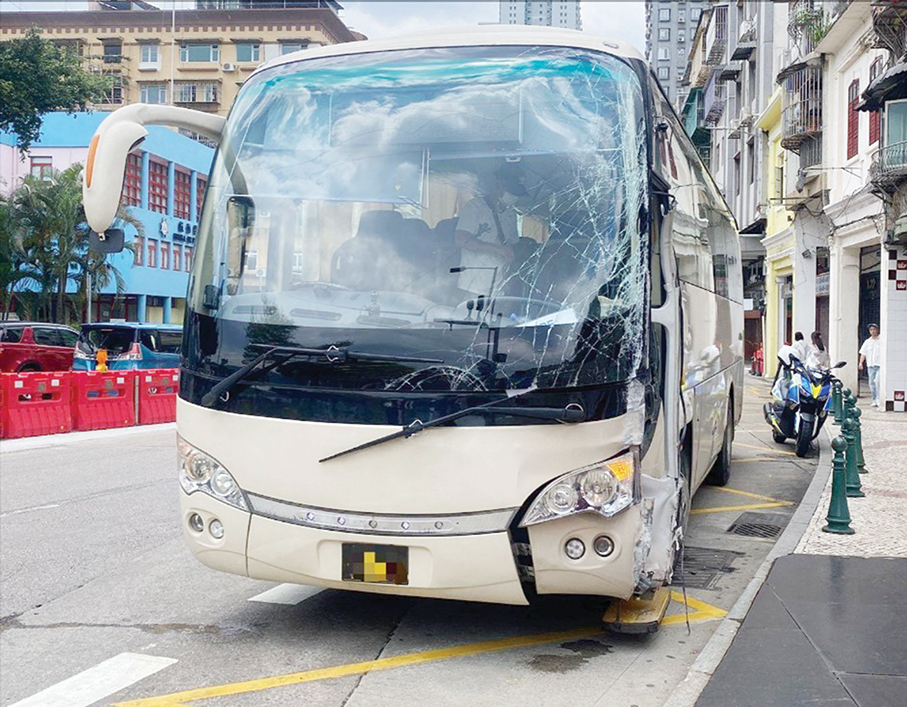 The statement said that at around 1 p.m. yesterday the PSP received a report saying that the left-hand side of a tourist coach had hit a building on Rua de Barra near Casa do Mandarim, causing damage to the external wall of Heng Wo Building, Casa do Mandarim and the vehicle itself.