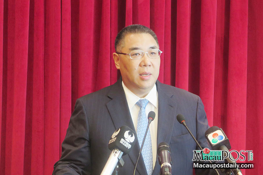 Chief Executive Fernando Chui Sai On speaks to reporters yesterday at the airport upon departure to Beijing. Photo: Tony Wong