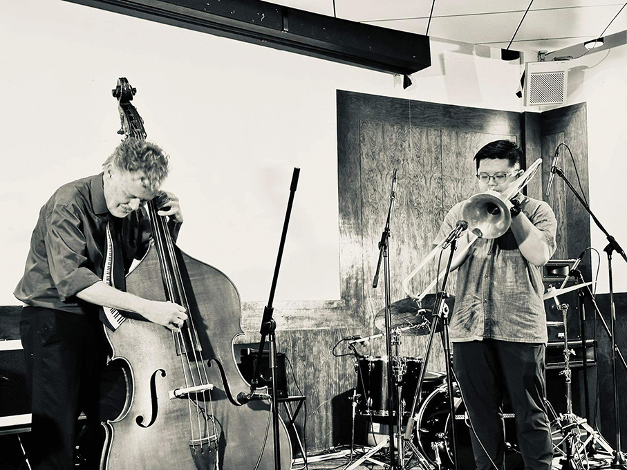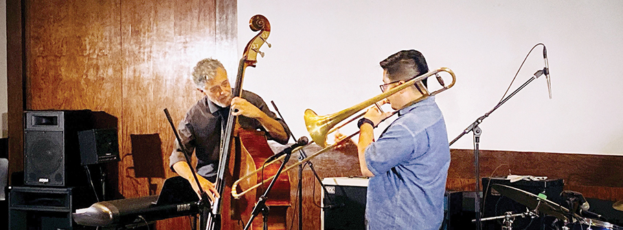 Zé Eduardo plays duet with local trombonist Gregory Wong Weng Hou at the Orient Foundation on Saturday night. –All photos provided by Mars Lee Siu Hong