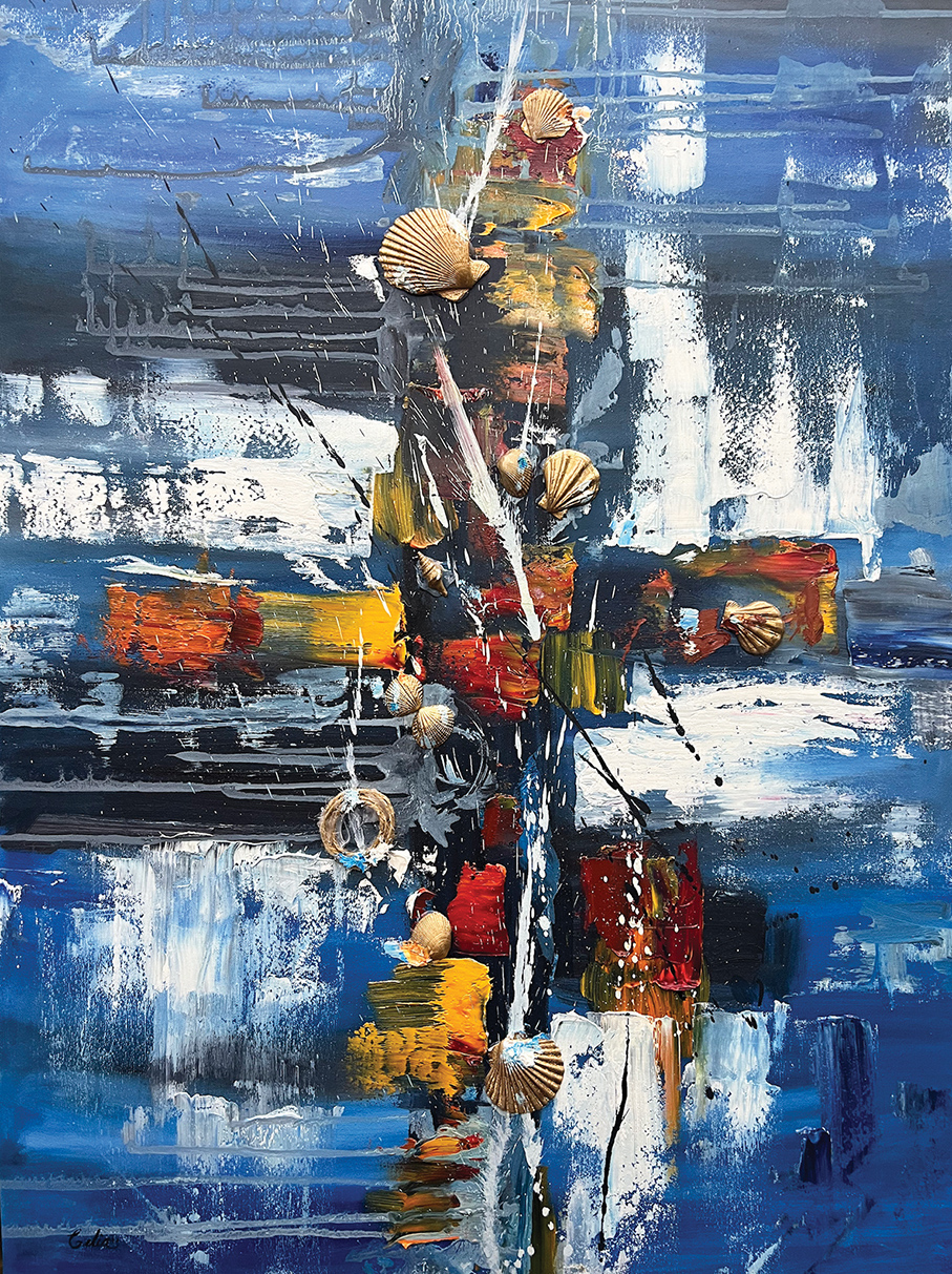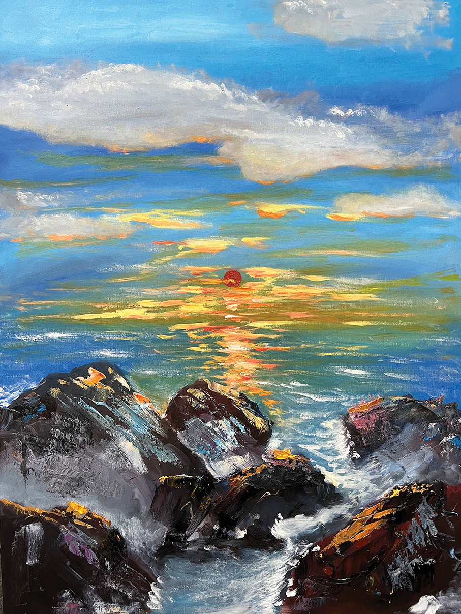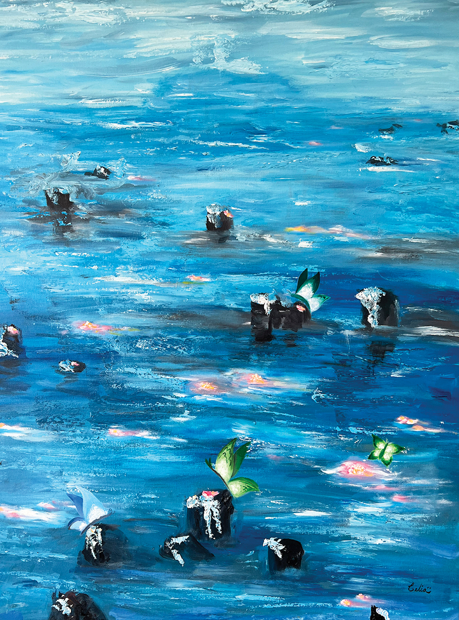 Local artist Celia Si (施明珠) is showcasing her works in “Poetry of Water Tune” – Art Oil Painting Exhibition at Café Voyage on Rua do Padre António Roliz.