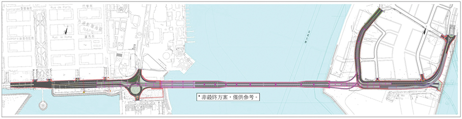 According to the website, the vehicular overpass known as AB Link, will run from near the Kun Iam Statue on the Nape waterfront to the roundabout outside the Macau Science Centre (MSC), from where it will cross the sea running under the Macau-Taipa Friendship Bridge and finally arrive in Zone A.