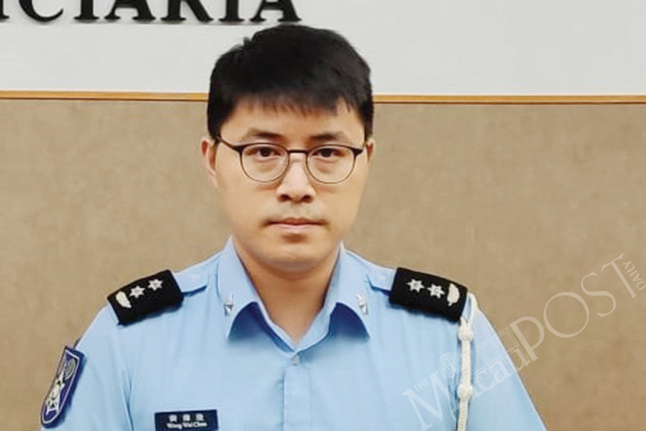 Public Security Police (PSP) spokesman Wong Wai Chon looks on during Monday’s regular press conference. – Photo: William Chan