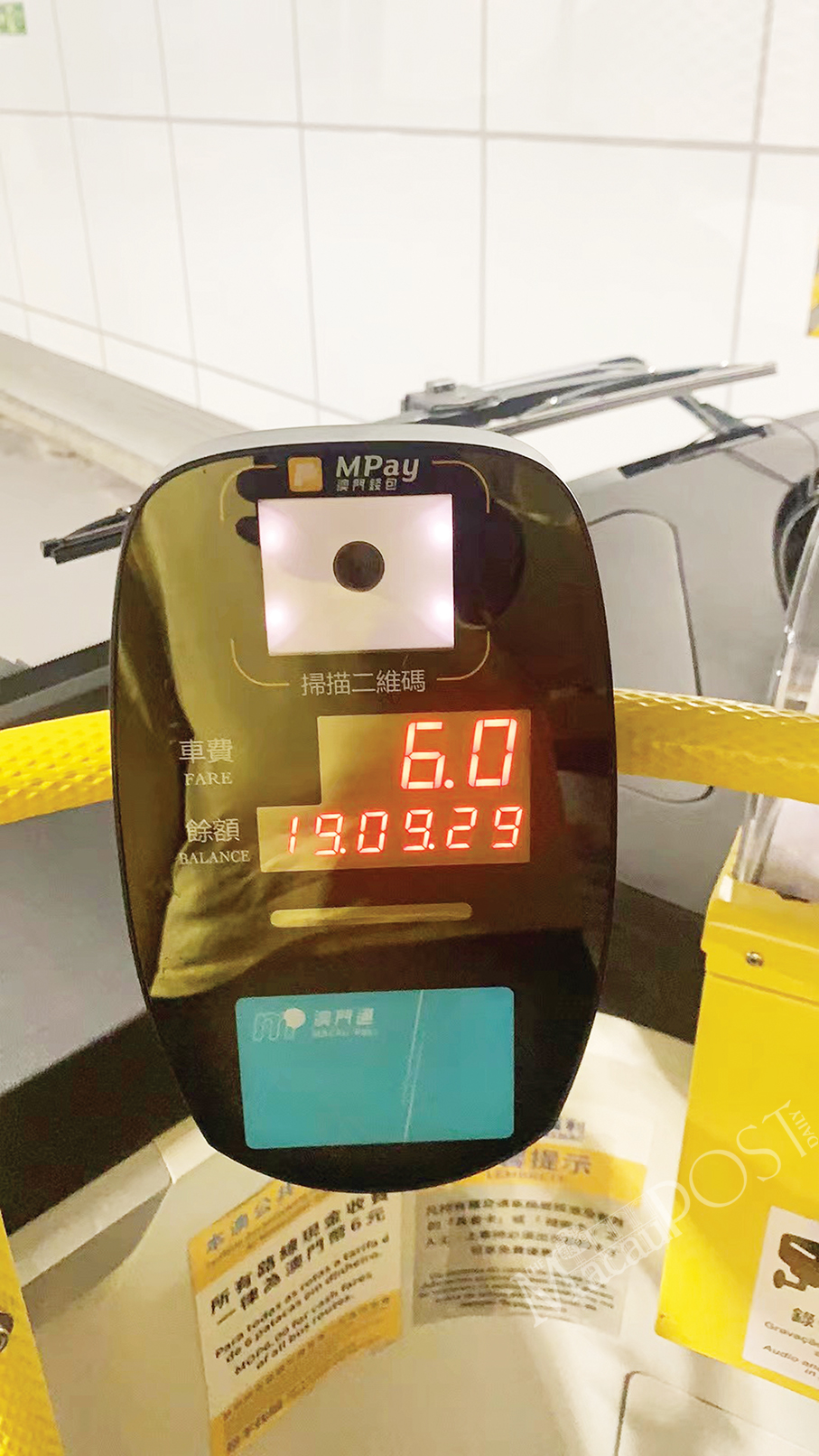 A DSAT and AMCM joint statement said yesterday that with a view to promoting mobile payment innovation and responding to requests by civil society, the bureau and the city’s quasi-central bank have decided to jointly promote the collaboration of bus operators and help coordinate various financial institutions to complete the system update, with the payment QR code for buses functionality added to mobile payment applications, upgrading the original “Simple Pay” payment into “Simple Pay+”, the signage of which will soon be displayed in the means of payment applications and on the bus fare scanner.