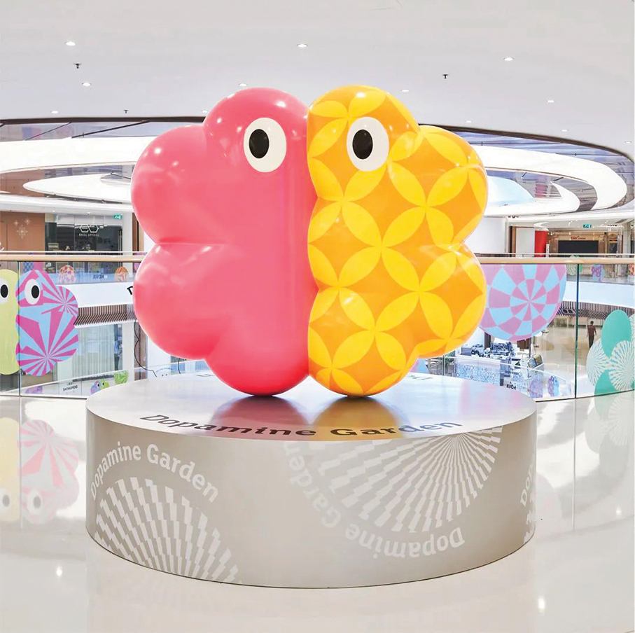 Leong also emphasised the promotional power of social media. “One of the main advantages of an art installation, as opposed to 2D art-like paintings, is that people are more likely to take photos with it and share them on social media, indirectly advertising the event and the mall,” he noted, adding that in addition to the garden in the mall’s centre, the Dopamine Garden figures also appear on the glass barriers and escalators, and two brain installation figures were placed on the top and basement floors of the mall.