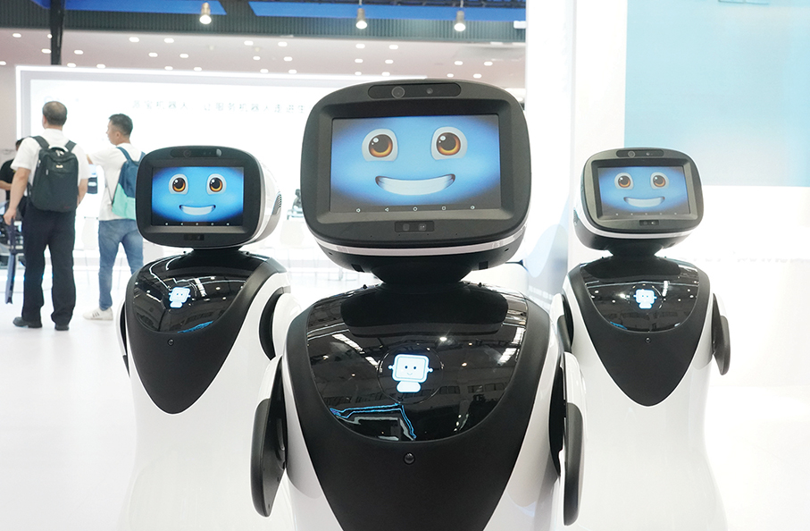 Service robots are displayed at the World Robot Conference 2023 in Beijing on Thursday. The fair ends tomorrow. – Xinhua