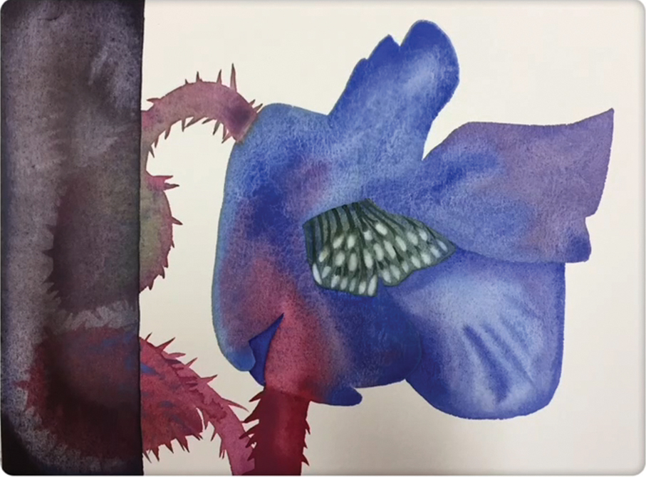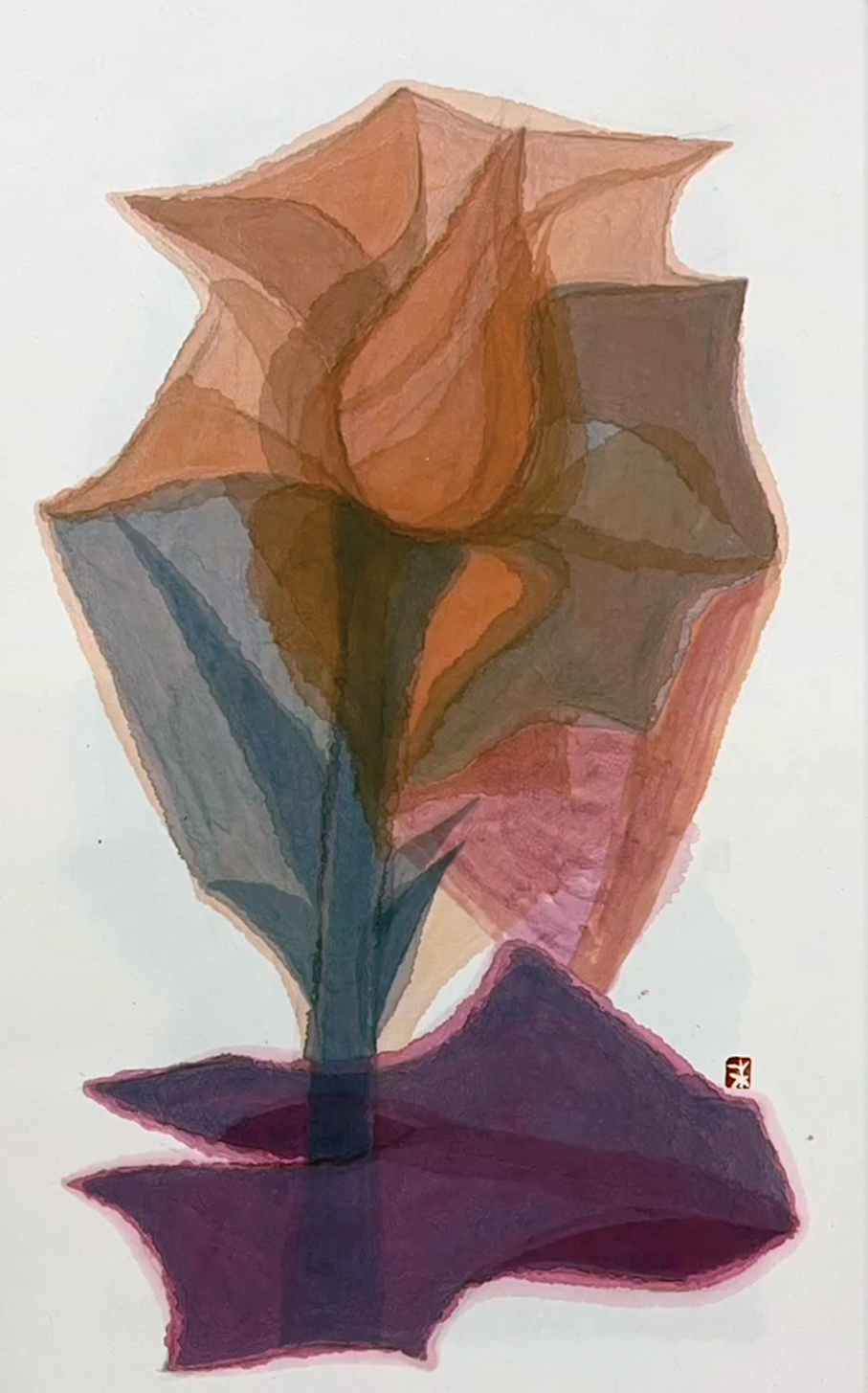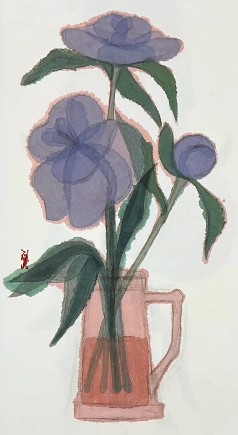 A collection of 28 Chinese paintings are on display at the exhibition, with one of them representing a flower created from solid traditional pigments diluted in water on paper and “xuan” (rice paper), based on the painting techniques of “great or minimum detail, transparency and colour saturation”, according to a statement by the Rui Cunha Foundation.
