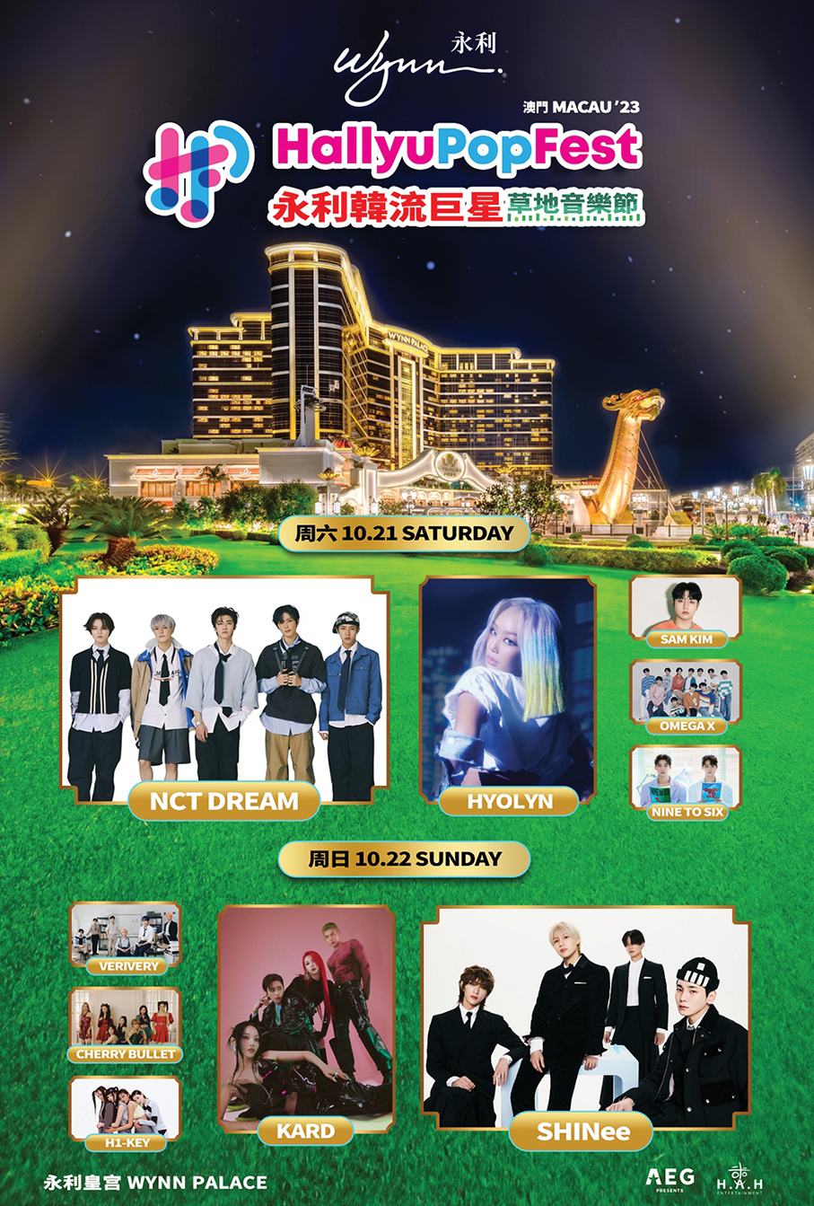 Wynn Macau, in partnership with AEG Presents Asia and H.A.H. Entertainment, will host “HallyuPopFest” in Macau for the first time, with the event slated to take place from October 21-22 featuring “some of the biggest names in K-pop” performing on Wynn Palace’s outdoor lawn in Cotai, according to a joint statement from the organisers.