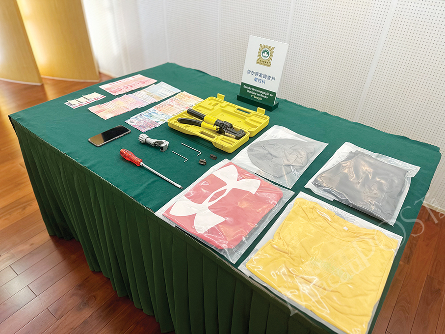 The Judiciary Police identified the 46-year-old man surnamed Hu as the suspect and arrested him at a hotel in the city centre on Sunday, according to Ho, who pointed out that PJ officers found 1,500 patacas, HK$6,200 and 1,300 yuan in cash, as well as four supermarket coupons and tools such as pliers, pipe cutters and screwdrivers in the suspect’s hotel room.