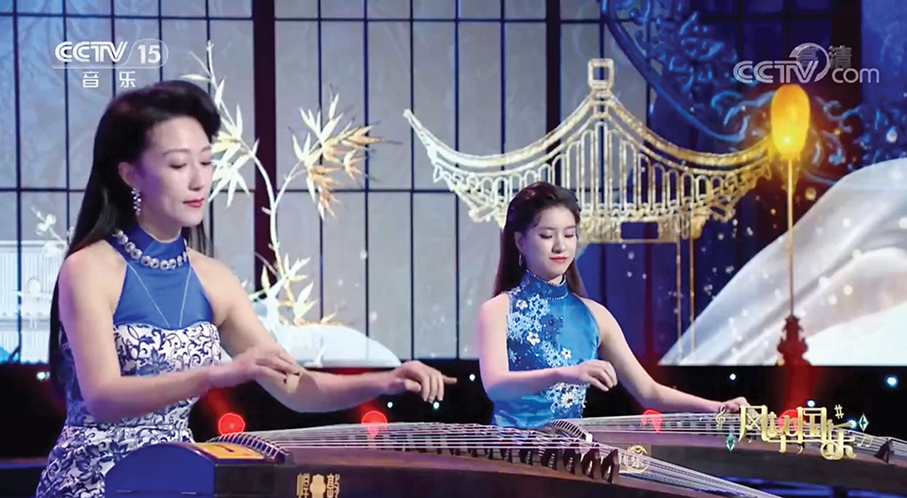 Playing ‘The Waterfall’ on CCTV, with teacher Su (left) on March 11, 2022.