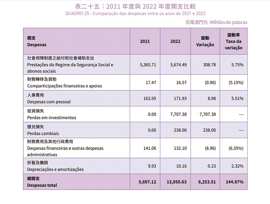 This table provided by the Social Security Fund (FSS) earlier this year in its 2022 annual report shows a comparison of its expenditures in 2021 and 2022.
