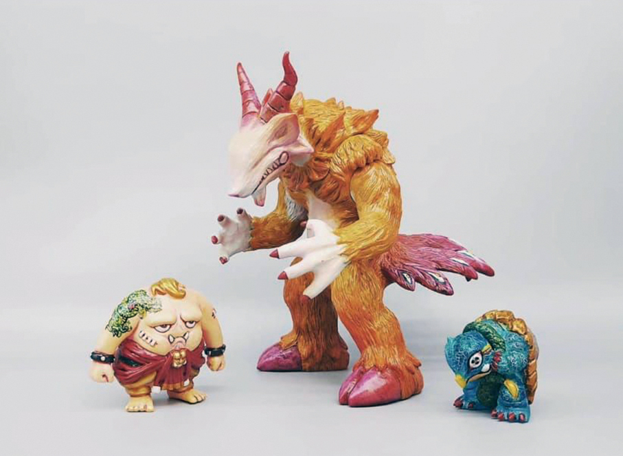 Toy art by local artist and creator of GrideToys Chan Wang Hou, namely “Xingtian” (left), “Xuangui” (middle) and “Boyi”, inspired by the characters in the “Classics of Mountains and Seas”.