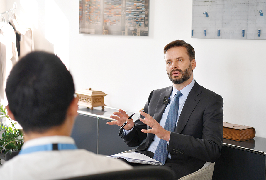 World Trade Organization (WTO) chief economist Ralph Ossa speaks during an interview with Xinhua at the WTO headquarters in Geneva, Switzerland, on Tuesday. – Xinhua