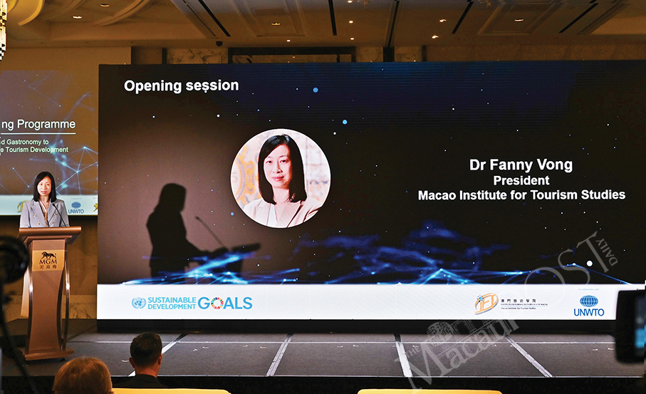 IFTM President Fanny Vong Chuk Kwan delivers a speech during yesterday’s opening ceremony for the 15th IFTM-UNWTO Training Programme.