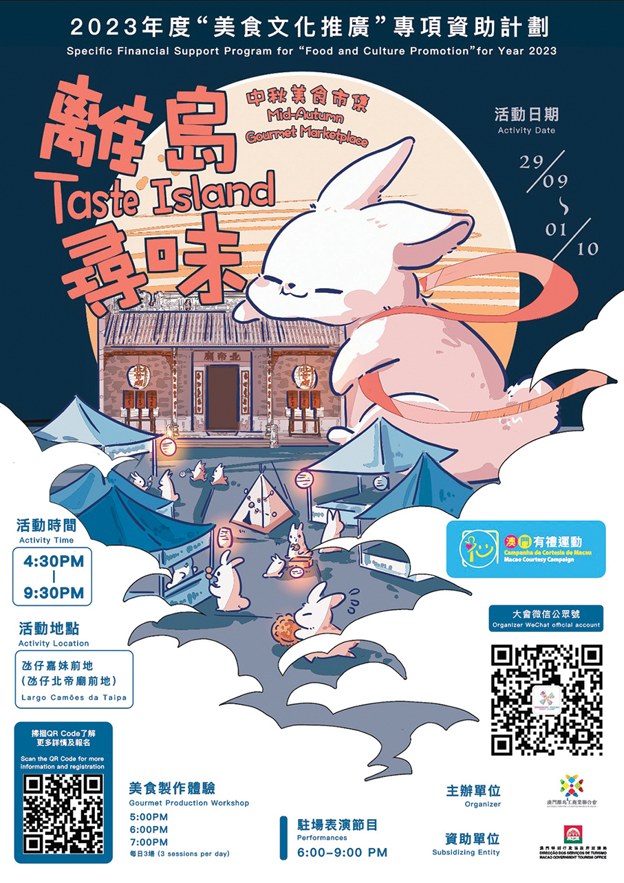 This poster provided by the Macau Government Tourism Office (MGTO) yesterday shows the details of the upcoming “Taste Island - Mid-Autumn Gourmet Marketplace” activities.