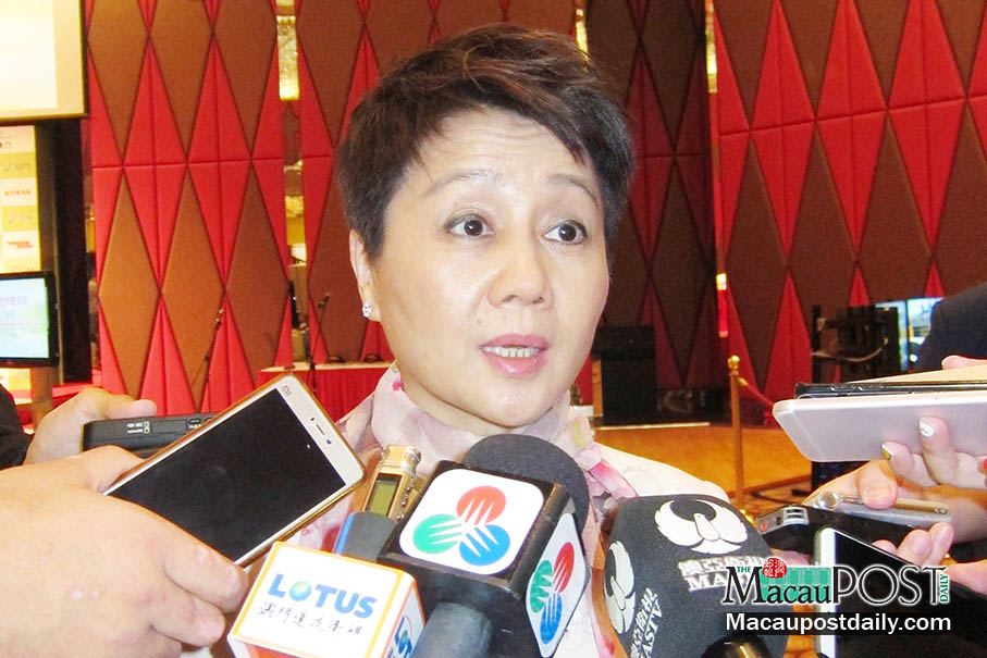 SJM Managing Director and Chief Administrative Officer Angela Leong On Kei speaks to reporters prior to the SJM Theodore Racing Team press conference at Grand Lisboa hotel yesterday.