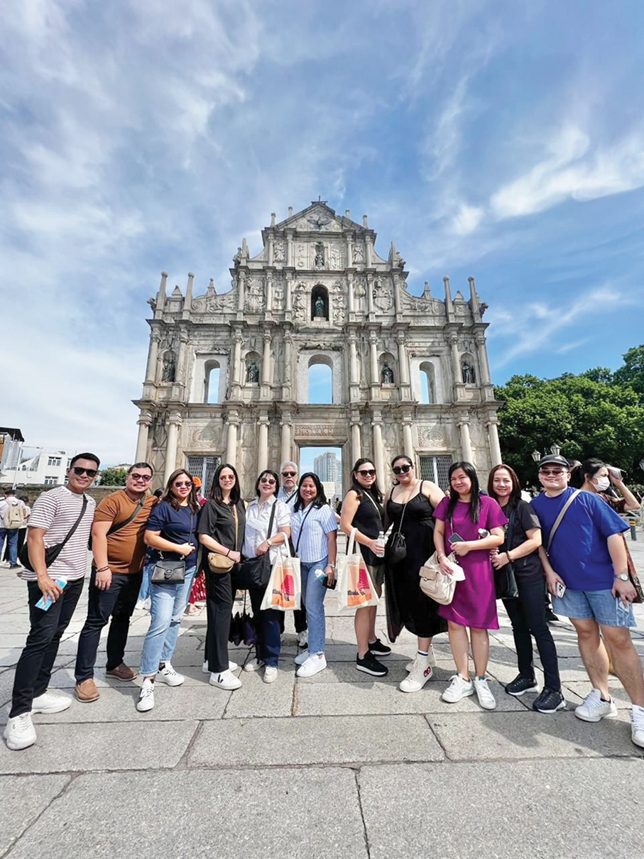 This undated handout photo recently provided by the Macau Government Tourism Office (MGTO) shows members of the Philippine delegation posing at the Ruins of St Paul’s during their familiarisation visit to Macau.