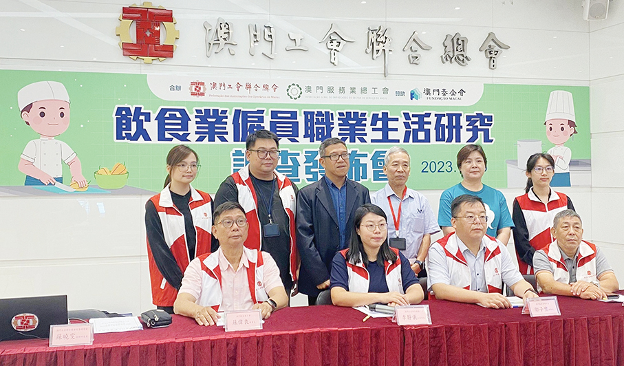 The Macau Federation of Trade Unions (MFTU or FAOM – aka Gung Luen in Cantonese) and the Service Sector Employees’ General Association of Macau conducted a survey regarding the working life of employees in the catering industry between April and last month, with 1,543 valid questionnaires collected. The findings of the survey were released by representatives of the two groups, including directly-elected lawmaker-cum-unionist Ella Lei Cheng I, during a press conference on Friday at the FAOM headquarters in Patane.