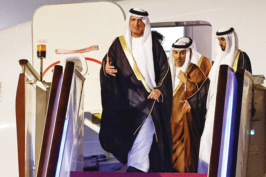 UAE Supreme Council Member and Ruler of Ras Al Khaimah Sheikh Saud bin Saqr Al Qasimi arrives yesterday at the Beijing Capital International Airport to attend the 3rd Belt and Road Forum for International Cooperation in Beijing. The two-day forum takes place today and tomorrow. The forum’s CEO conference and welcoming banquet will be held today, while President Xi Jinping will address its formal opening ceremony will be held tomorrow. – Xinhua