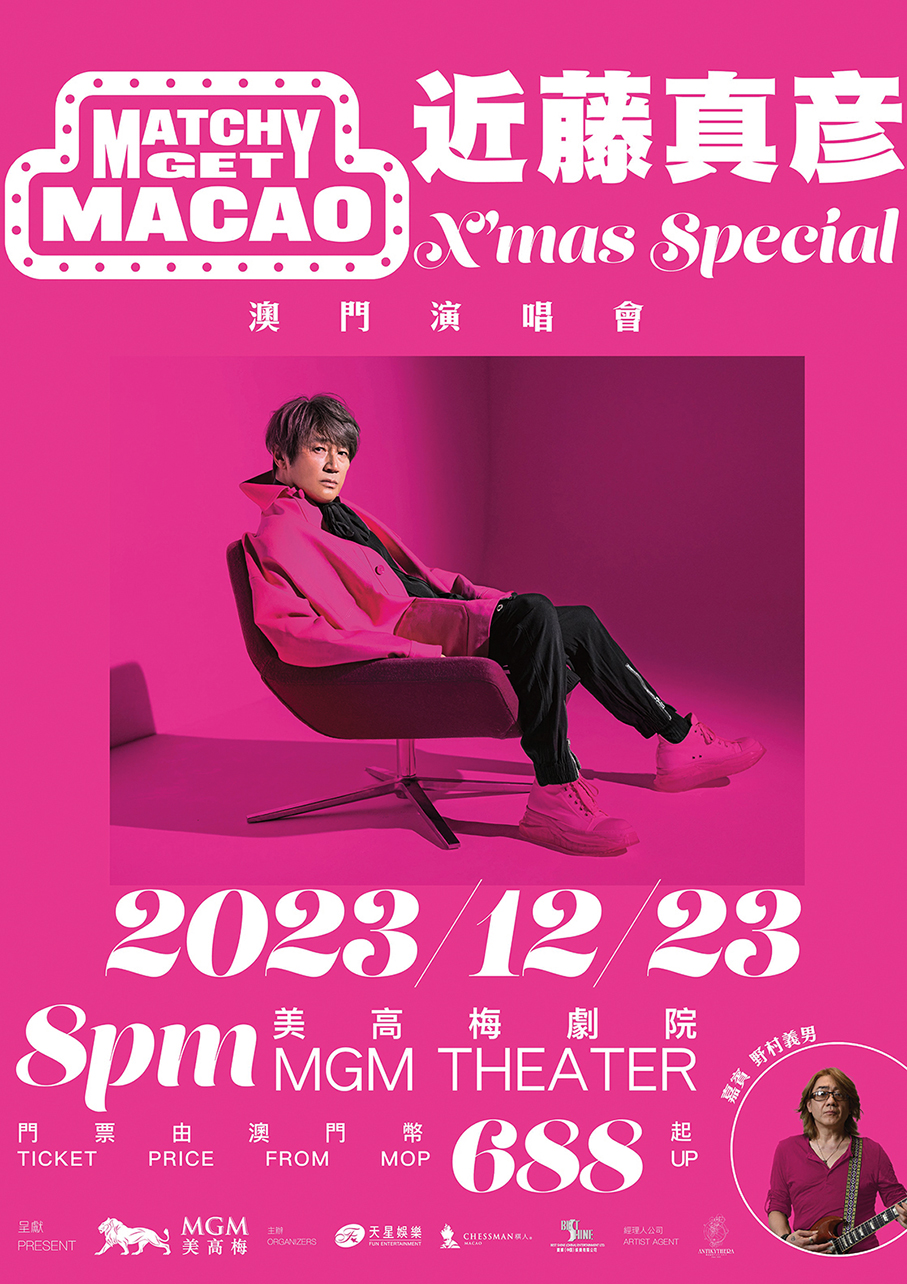 Early bird tickets for “Masahiko Kondo Macau Concert” will be available from next Wednesday from 11 a.m. on bookyay.com, and next Friday for the general public from 3 p.m. on https://www.mgm.mo/en/cotai/entertainment/matchy-get-macao-2023