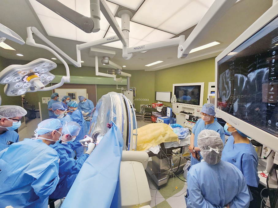 This undated handout photo provided by the Health Bureau (SSM) yesterday shows doctors at the public Conde de São Januário Hospital Centre conducting a Deep Brain Stimulation (DBS) surgical procedure on a local Parkinson’s disease patient.