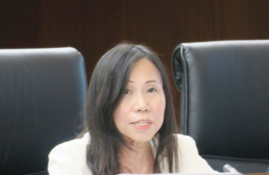Monetary Authority of Macau (AMCM) Administrative Committee member Henrietta Lau Hang Kun addresses Friday’s plenary session in the Legislative Assembly’s (AL) hemicycle. – Photo courtesy of TDM