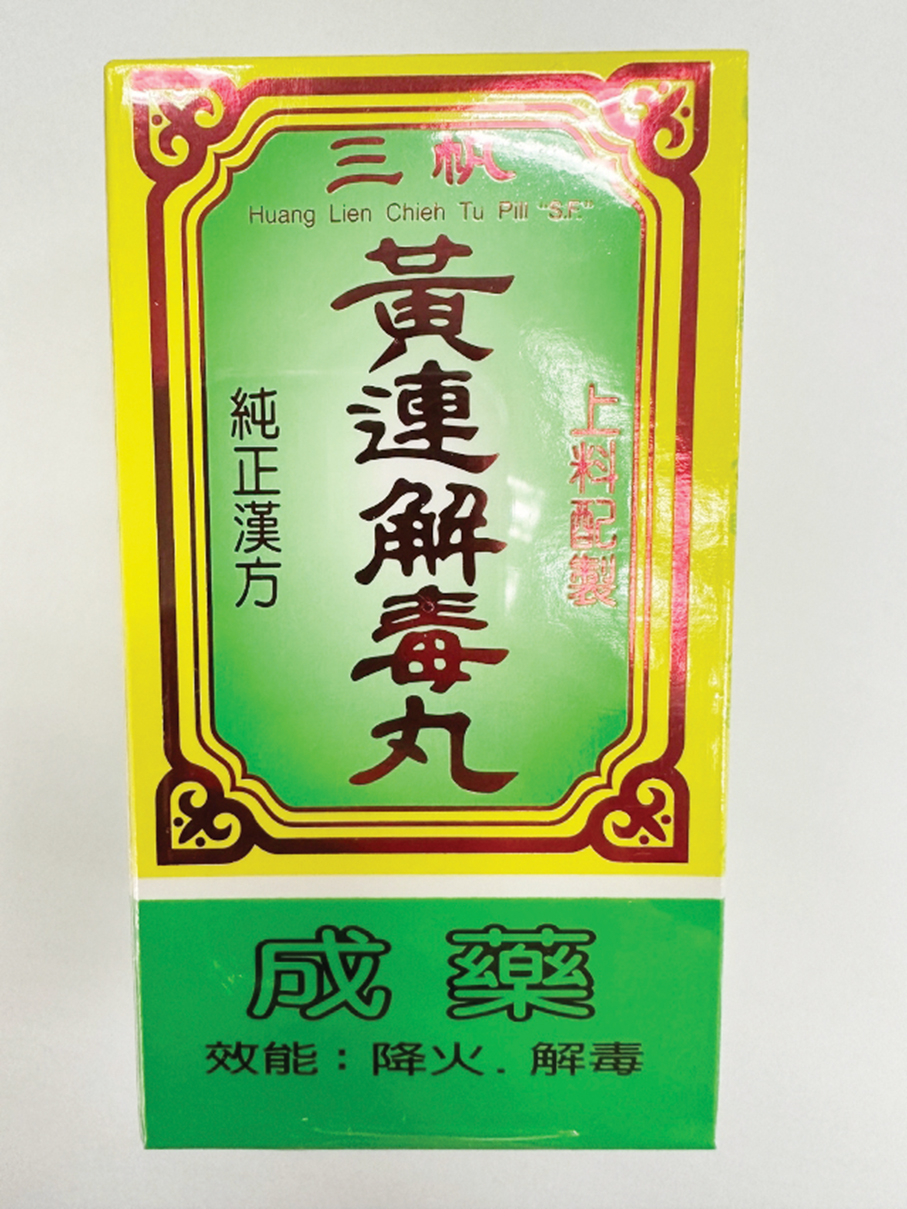 This undated handout photo provided by the Pharmaceutical Supervision and Administration Bureau (ISAF) yesterday shows the Taiwan-made traditional Chinese medicine (TCM) “Huang Lien Chieh Tu Pill ‘S.F’”, produced by Taiwan Three Mast Pharmaceutical Limited.