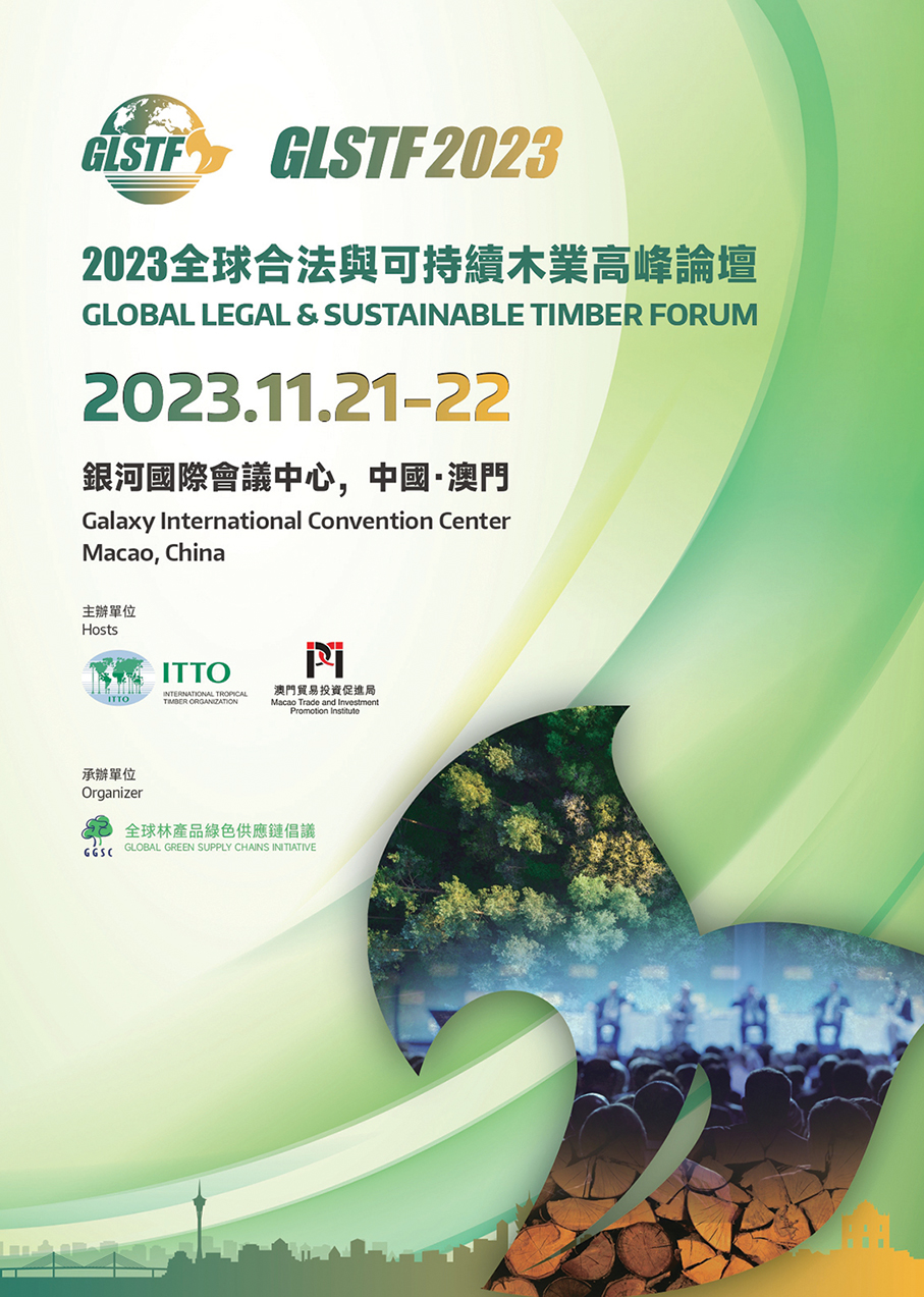 This poster provided by the Macau Trade and Investment Promotion Institute (IPIM) yesterday promotes the Global Legal & Sustainable Timber Forum (GLSTF) 2023, which will take place later this month.