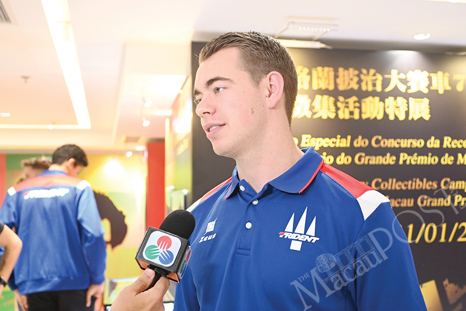 Dutch racer and MGP F3 winner in 2019 Richard Verschoor speaks with reporters at the Macau Grand Prix Museum yesterday.
