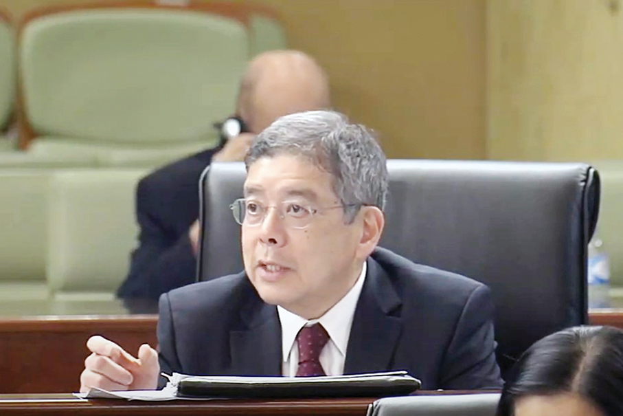 Secretary for Transport and Public Works Raimundo do Rosário addresses yesterday’s Q&A session about his portfolio’s 2024 policy guidelines in the Legislative Assembly’s (AL) hemicycle. – Photo: GCS