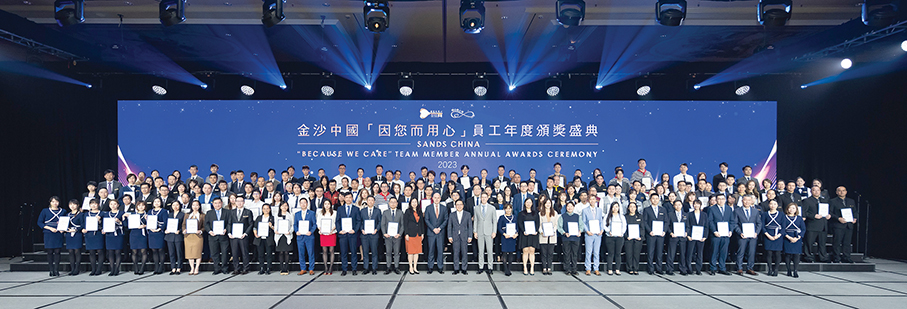 Integrated resort operator Sands China said in a statement yesterday that outstanding staff members were awarded at the Because We Care Team Member Annual Awards Ceremony 2023, which was held on November 22 at The Venetian Macao.